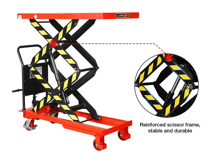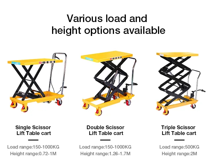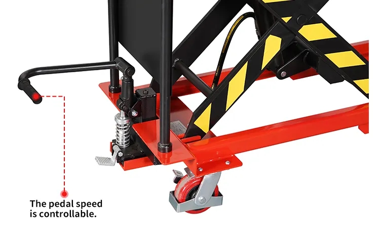 *Tragfähigkeit 150–2000 kg optional. Höhe 0,7 m – 2 m optional *Führen Sie fußbetriebenes Heben, manuelles Senken und steuerbare Geschwindigkeit.