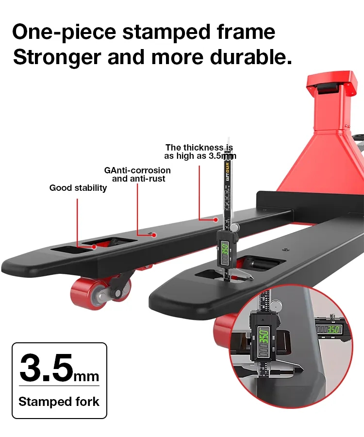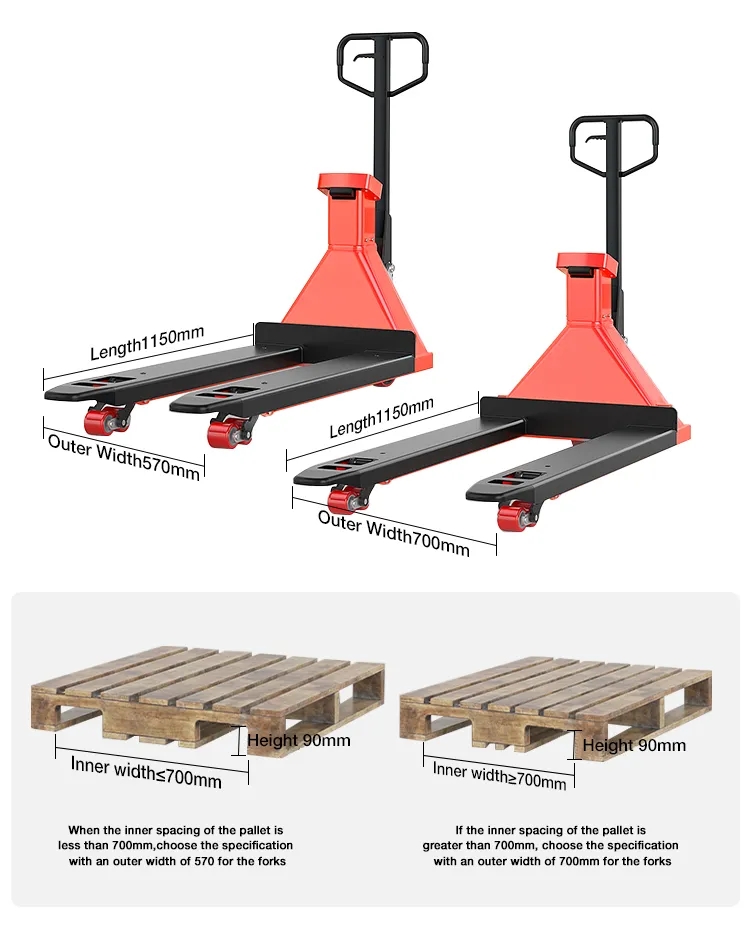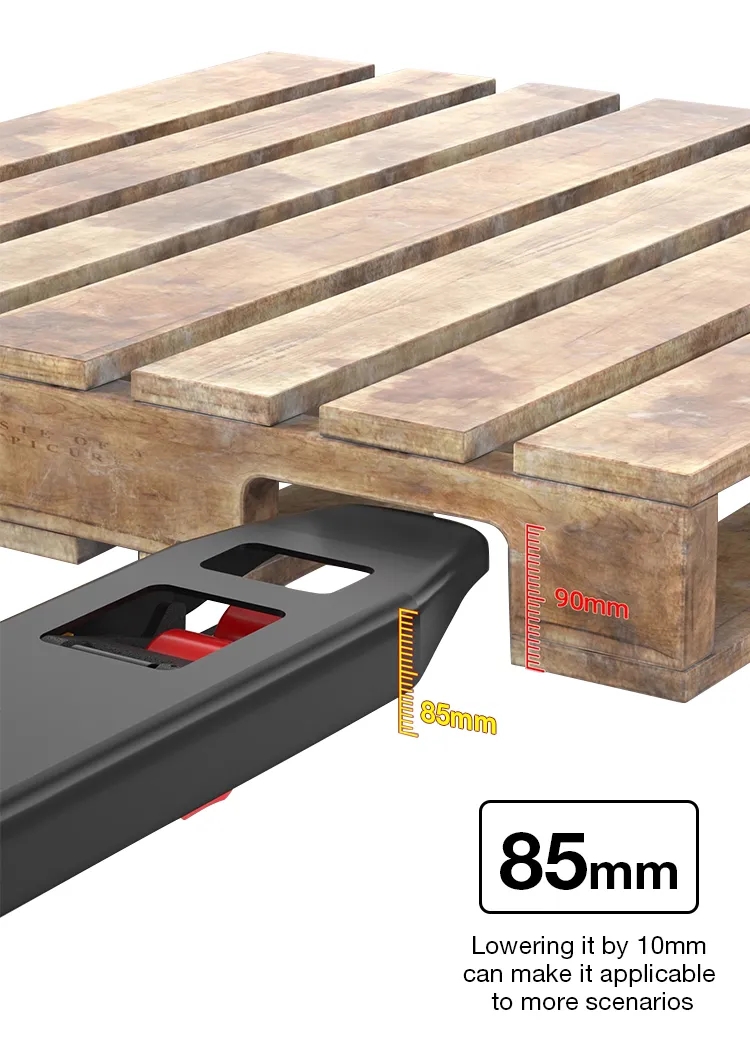 Mit der Skala aufgerüstet, kann anhand der Skala an der Gabel schnell festgestellt werden, ob die Gabel die Palette überschreitet, wiederholte Drucktests vermieden und die Effizienz verbessert werden.